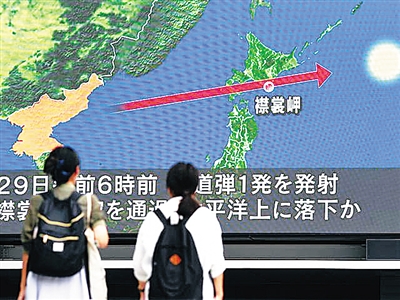 日本政府说,导弹在当地时间6时零6分左右飞过北海道东部襟裳岬,6时12分左右落入这一海岬以东1180公里的太平洋海域。导弹经过北海道上空的时间约两分钟,触发日本提醒国民注意的全国瞬时警报系统。