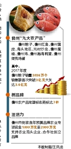 其中,儋州粽子成为该市品牌农业产销量与年俱增的标杆之一。儋州市商务局统计表明:2016年度,儋州粽子销量1825万个,销售收入首次跃上2亿元新高,达2.19亿元;2017年度,销量3036万个,销售额首次突破3亿元大关,达3.6亿元。