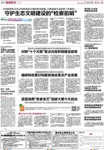海南日报 海南新闻综合 004 2017-08-301 2017年08月30日 星期三