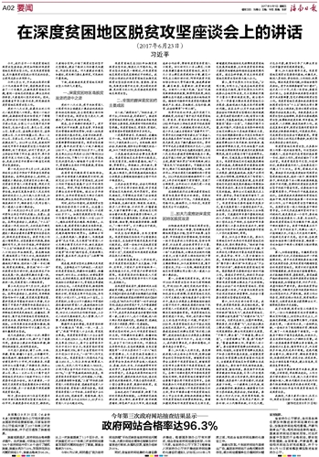 在深度贫困地区脱贫攻坚座谈会上的讲话