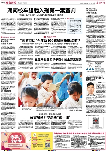 海南日报 海南新闻社会/民生 009 2017-09-011 2017年09月01日 星期五