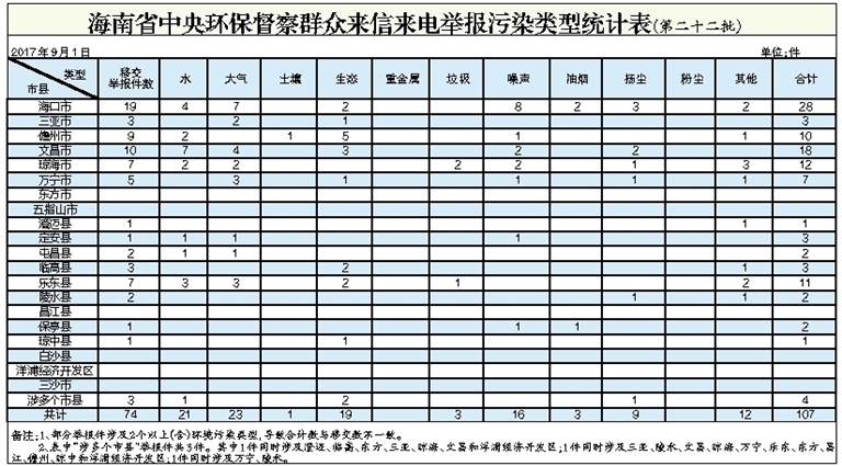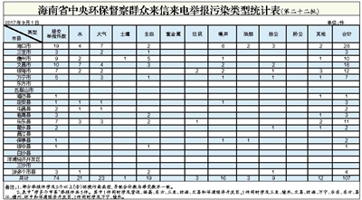 海南省中央环保督察群众来信来电举报污染类型统计表