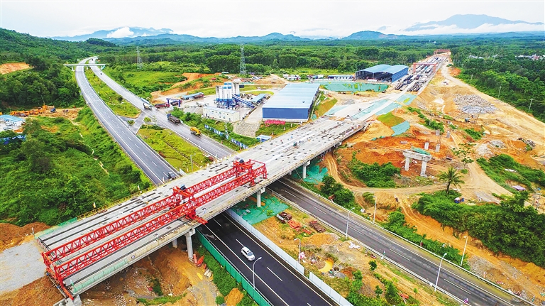 海南“田”字型高速中心点 立交箱梁架设完成