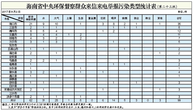 海南省中央环保督察群众来信来电举报污染类型统计表(第二十三批)