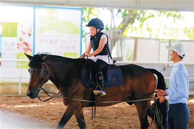 8月28日,在海南鸿洲皇家国际马术俱乐部,戴着头盔、身穿护甲等装备的“小骑士”,在专业教练的指导下,认真学习马术。据了解,随着人们生活水平的不断提高,马术运动近年来在海口悄然兴起,不少家长带着孩子学习马术,在强身健体的同时,让孩子在充满挑战性的运动中锻炼应变能力和勇气。本报记者 张杰 摄