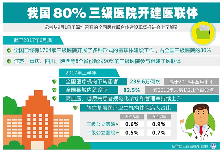 全国已经有1764家三级医院开展了多种形式的医联体建设工作,占全国三级医院的80%