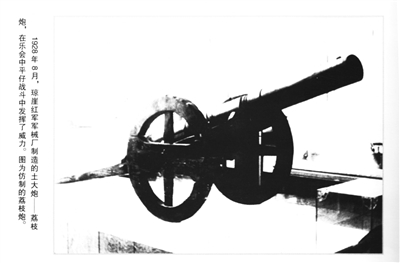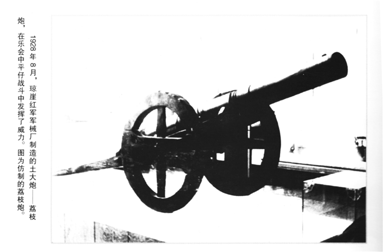 1928年8月,敌人集中兵力进攻乐四区。红军军火奇缺,特委要求军械厂试制土地雷、土手榴弹、土大炮。制造大炮需要炮管,但军械厂没有铁管,于是大胆用荔枝木代替:将荔枝树干凿成管作炮膛,将火药、铅块、铁片、铁砂等装进去,点燃导火索后能射到几百米外。