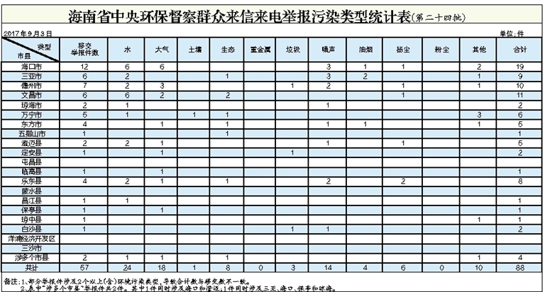海南省中央环保督察群众来信来电举报污染类型统计表(第二十四批)