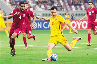 易边再战,中国队主帅里皮用姜至鹏换下任航,改打三中卫阵型。然而刚刚变阵的中国队就遭受打击。第47分钟,卡塔尔队在前场打出流畅配合,莫埃斯禁区内横敲,阿费夫推射空门命中,中国队0:1落后。