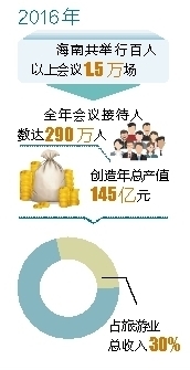 会奖产业强大的“吸金”能力,在旅游城市三亚表现明显。据三亚市旅游协会不完全统计,该市接待千人以上规模的会议从2015年的48场猛增到2016年的139场,其中,去年10月至今年3月旅游旺季期间,各类会议活动同比增加约30%。