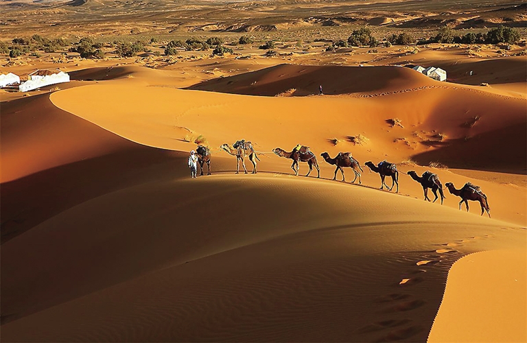 撒哈拉沙漠是无数探险者的极限梦想。身处广阔无垠的撒哈拉,你可以在沙漠里开着越野左右摇摆,躺在沙丘上感受太阳的烘烤,唱着欢快的阿拉伯歌曲手舞足蹈。