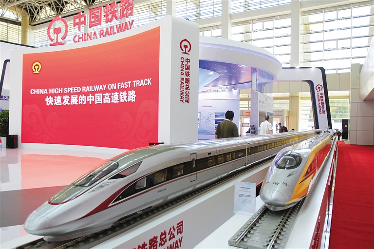 9月6日,在宁夏银川,观众在中国高铁技术成就展上参观。 当日,中国高铁技术成就展在2017中国—阿拉伯国家博览会上举行。展览全面展示了中国铁路建设发展历程、中国铁路技术装备水平、中国高铁成就等。 新华社记者 隋先凯 摄