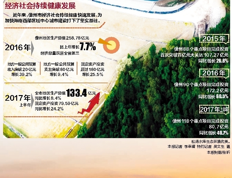 市场主体增多,助推市域经济整体向好。儋州市发改委统计数据表明:2016年,儋州90个重点项目完成投资172.2亿元,同比增长60.5%。2017年上半年,儋州118个重点项目完成投资80.7亿元,同比增长40.7%。