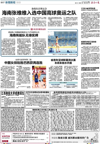 海南日报 体育新闻综合 019 2017-09-071 2017年09月07日 星期四
