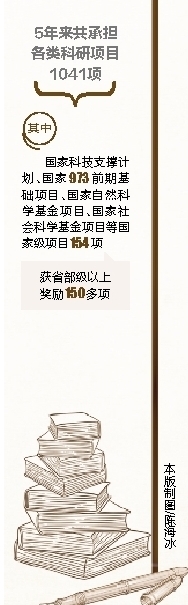 在学术科研方面,学校继续大力推进“科研三高工程”,学术科研工作取得重大进展,5年来共承担各类科研项目1041项,其中国家科技支撑计划、国家973前期基础项目、国家自然科学基金项目、国家社会科学基金项目等国家级项目154项,实现了国家社会科学基金年度重点项目、国家社会科学基金教育学单列项目和海南省科技重大计划项目零的突破。获省部级以上奖励150多项,其中获得全省唯一的全国教育科学研究优秀成果奖一等奖和省科技进步特等奖,获得全省2016年度9项省科技进步奖一等奖中的2项和2016年度全省社科一等奖8项,均居全省之首。
