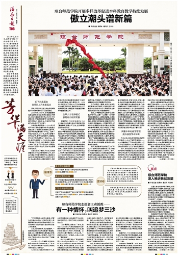 2016年3月28日,是所有“琼台人”永远铭记的日子。这一天,教育部致函海南省人民政府,同意琼台师范高等专科学校升格为本科高校,更名为琼台师范学院,并明确要求琼台师范学院要全面加强内涵建设,不断提高教育教学质量和办学效益,办出特色、办出水平,为海南省的经济发展和社会进步作出更大贡献。
