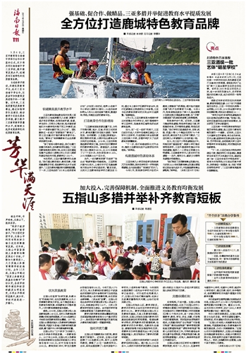 如今,在三亚不少特色课程设计中,均能见到“鹿城标签”:南新小学打造足球特色学校,三亚外国语学校推出中华传统课程,榆林八一小学设立军事文化特课程,三亚挚慈学校引入前沿的行走课程……此外,海洋文化、疍家文化等特色课程亦相继推出。