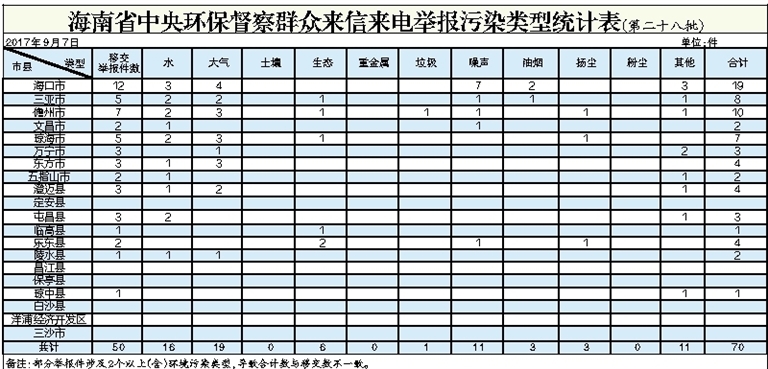 海南省中央环保督察群众来信来电举报污染类型统计表(第二十八批)