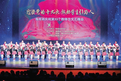 晚会中,来自海南大学、海南师范大学等高校,海南中学、海南省国兴中学等中学及海口市中心幼儿园等的教师、学生倾情演绎,通过歌曲《我要为老师唱首歌》《绿叶对根的情意》、舞蹈《我们刚上学》《老师,不想说再见》、配乐诗朗诵《师颂》等精彩纷呈的节目,代表全省人民向广大教育工作者致以衷心感谢和崇高敬意。
