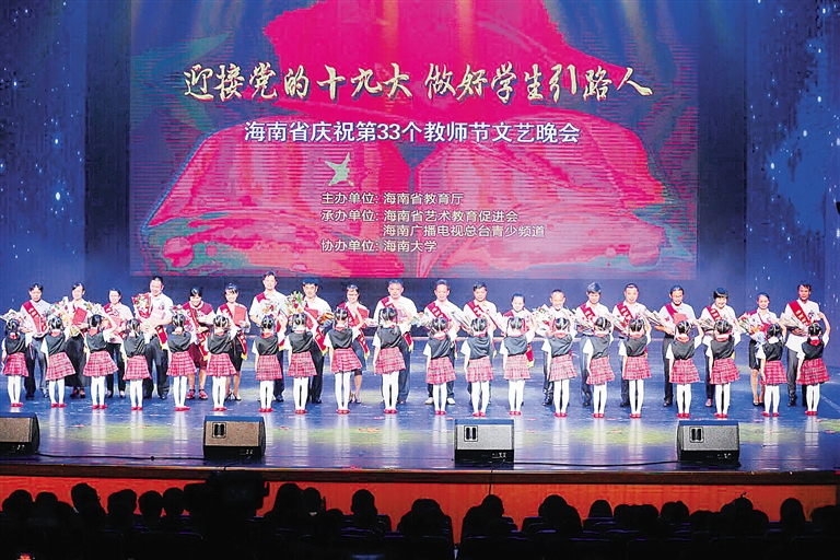 省委常委、组织部部长、教育工委书记王瑞连,副省长王路观看晚会并为获得2017年度“海南省优秀乡村教师”“海南省优秀特岗教师”荣誉称号的教师颁奖。