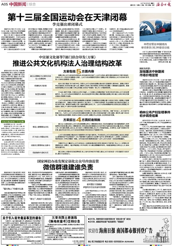 海南日报 中国新闻综合 005 2017-09-091 2017年09月09日 星期六