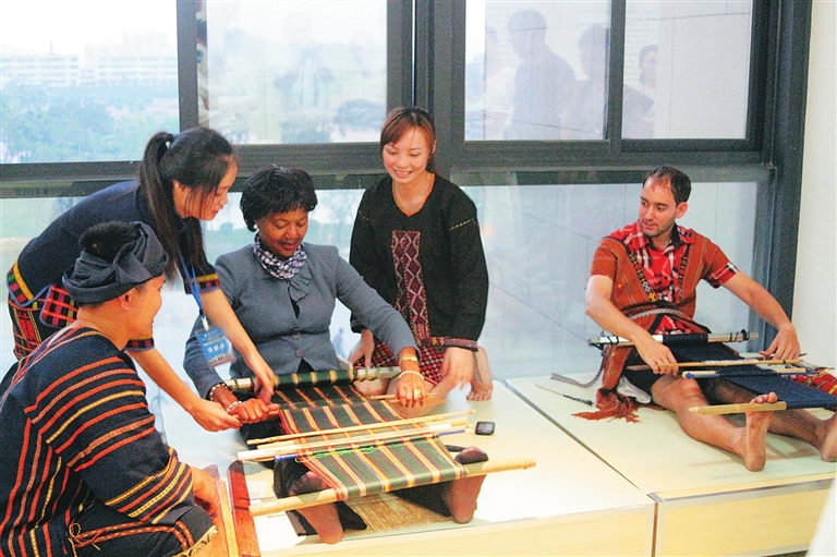 海南高校博物馆大多数都位于图书馆一隅,不管该校的主打学科是什么,海洋性与民俗性是海南高校博物馆绕不过去的两大主题。比如,海南大学博物馆有两个展厅,分别是海南历史文化展厅与海上丝绸之路展厅,集中展示了黎族传统服饰、海南民俗文化与海洋文化等领域的藏品;海南师范大学虽然是一所师范院校,但其生物多样性博物馆是海南省第一个融科学性、趣味性为一体的自然科学类博物馆;甚至海南民族技工学校,即便只是一所中等职业技术学校,依然有黎锦文化展厅与操作间。
