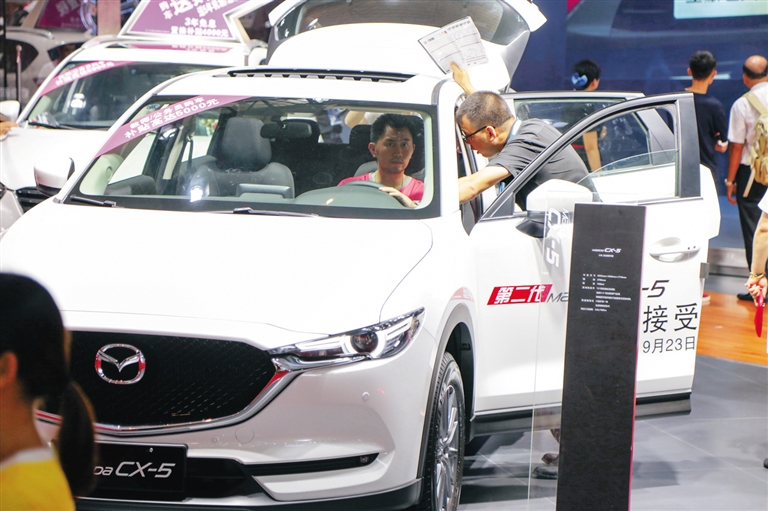在一汽丰田展台,一曲热辣的劲歌热舞顿时吸引了观众们的目光,6个青春靓丽的女孩身着白上衣粉短裙时尚动感、韵律十足,将观展者的激情点燃。“车展不仅是各大汽车品牌的秀场,更是年轻人的时尚集结地,逛累了看看演出挺好的。”小赵今年7月刚刚从内地大学毕业来海口工作,准备在车展上买一辆小车代步,却被此起彼伏的表演所吸引。