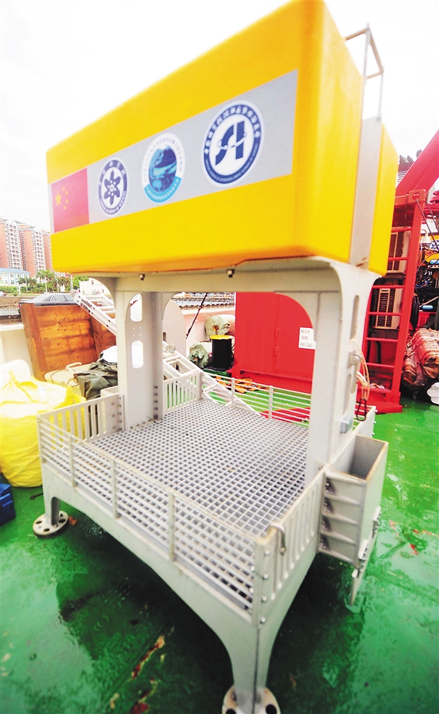 作为海洋科学综合考察船,“科学号”海洋科考船搭载了“十八般兵器”。当日,记者在“科学号”上看到了无人缆控潜水器(rov)、电视抓斗和万米温盐深仪等先进的深海探测和取样设备,一睹这些高科技“兵器”的风采。