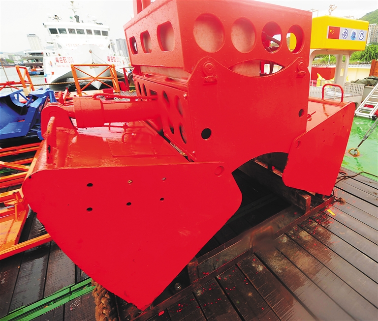 电视抓斗就是把摄像机安装在抓斗上,再装两个灯,相当于给抓斗安了一双眼睛,然后人在船上通过电脑屏幕监控,可以清楚地看到海底的情况,通过甲板监视系统操作斗体开合,根据需要对海底目标进行抓取采样,增加了取样的精准性。