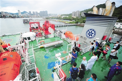 走进“科学号”的驾驶室,通透明亮是第一感觉,从室内向外360°均可远近观望。一开始,设计者并没想着搞成360°的可环视驾驶室,是在中国科学院海洋研究所“科学号”监造组各位专家的建议下才改的。“从驾驶室就能直观地看到后甲板上的工作情况,有利于驾驶台的指挥和操控。”驾驶室360°环视,“科学号”开启了国内科考船造船业的先河。