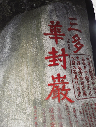 过了一堵石照壁,进入华封寺,东西石壁刻满历史名贤达仕的题词诗赋。