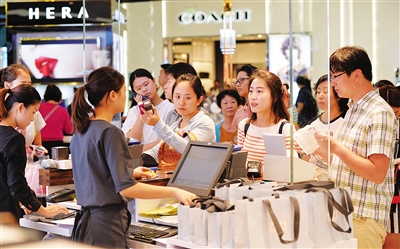 免税购物 三亚海棠湾国际免税城,游客们正在选购商品。本报记者 王凯 摄