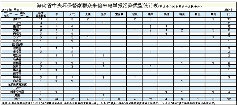 本报海口9月13日讯 (记者周晓梦)截至今天,在中央第四环境保护督察组向我省移交的第二十四批57件群众举报件中,经调查处理,已依法办结17件,正在办理40件。中央第四环境保护督察组分别于11日和13日向我省移交第三十二批、第三十三批群众举报件,共计55件,涉及92个问题。