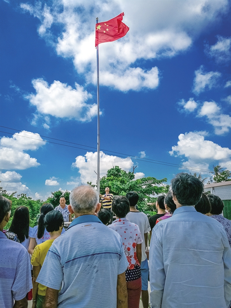 每次升旗仪式后,陈奕喜等村干部都会开展一些相关的宣传教育、学习培训活动,用亲切的家乡方言,告诉大家国旗的意义,讲解国家的惠民政策,言语间传递着朴素的爱国情怀。