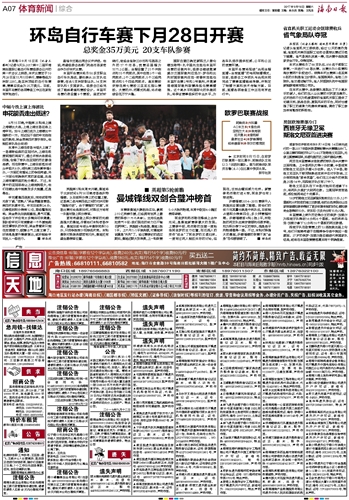 海南日报 体育新闻综合 007 2017-09-161 2017年09月16日 星期六
