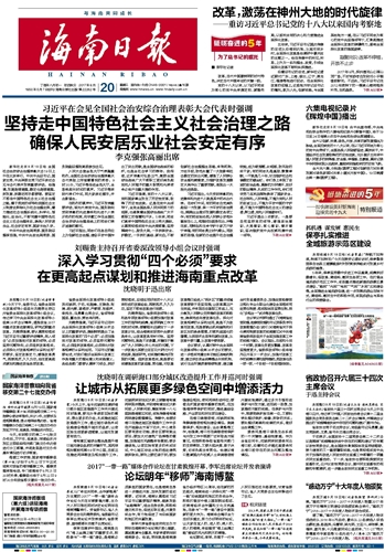 海南日报 头版 001 2017-09-201 2017年09月20日 星期三