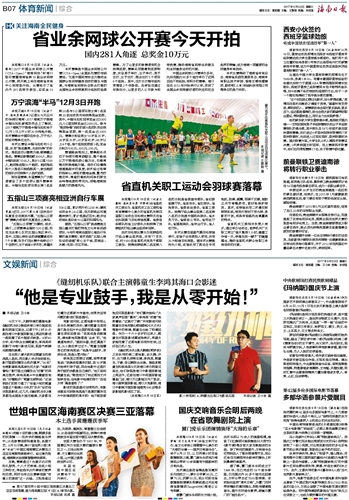 海南日报报业集团旗下媒体: 海南日报 |南国都市报 |南海网 |南岛晚报 |证券导报 |法制时报 |海南农垦报 设为首页