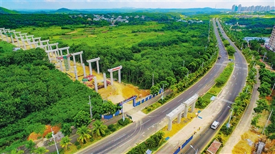9月19日,在儋州市那大镇,万洋高速公路工程正在有序推进,经过那大城区的牙拉大桥桩基已全部完成,墩柱、盖梁已完成83%,预计10月初开始进行箱梁架设施工。万宁至洋浦高速公路作为我省公路骨架网中一条横贯全岛的高速公路,是海南“田”字型高速公路网主骨架。本报记者 陈元才 通讯员 张璐 摄