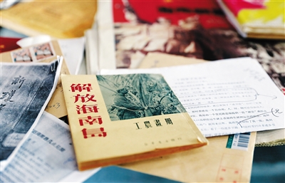 在海南大学图书馆,钟业昌随手从他捐赠的史料中拿出一本小册子,这本人民画报社出版于1950年关于海南岛解放的画册,仅60余页,封面已经发黄。这本画册是钟业昌多年前为了研究解放海南岛的图片资料,花了400元购买的,都是解放海南岛的第一手珍贵图片。