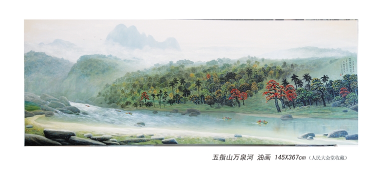 一分耕耘一分收获。笔耕不辍的孙国森多次参加美展并获奖,其代表作《山河秀色富水长存》被刻成壁画嵌在八达岭新长城,《五指山万泉河》被北京人民大会堂收藏。