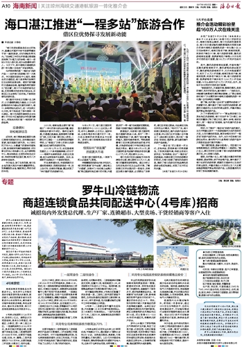海口市旅行社协会副秘书长孙相涛告诉记者,湛江拥有800万人口,是海口的重要旅游客源地。通过分析以及和当地旅行社及企业的对接,了解到湛江市民去国内的一些城市、东南亚及部分境外国家,必须要去广东乘机,湛江没有直达航线,无法满足当地市民的出行需求。“相对于广东,海口到湛江距离更近,境外旅游产品性价比更高,所以我们这次在推介会中推出了3条由湛江至海口,再分别‘一程多站’到老挝、俄罗斯、新马泰的境外旅游产品线路。”