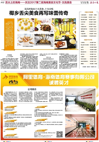 | 海南日报 舌尖上的海南——关注2017第二届海南美食文化节·文昌美食 012 2017-09-251 2017年09月25日 星期一 |