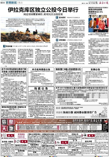 | 海南日报 世界新闻焦点 016 2017-09-251 2017年09月25日 星期一 |