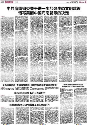 | 中共海南省委关于进一步加强生态文明建设 谱写美丽中国海南篇章的决定 | |