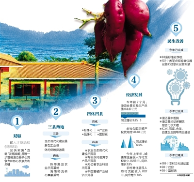 澄迈县委书记吉兆民介绍,今年以来,澄迈正不断提高站位,积极主动地融入到“海澄文”一体化经济圈、琼州海峡经济圈、21世纪海上丝绸之路建设,同时不断加强与泛珠三角圈、北部湾经济圈在旅游业、海洋、物流、生态环保等领域合作,实现互利共赢,“全县上下将团结一致、勠力同心,到2020年努力将澄迈建设成为全县人民的幸福家园、岛内外休闲度假养生胜地,谱写美丽中国澄迈新篇章!”