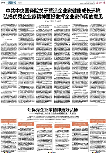 中共中央国务院关于营造企业家健康成长环境 弘扬优秀企业家精神更好发挥企业家作用的意见