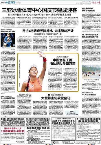 海南日报 体育新闻综合 017 2017-09-261 2017年09月26日 星期二