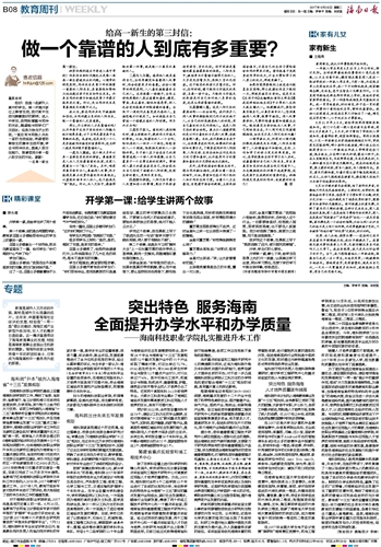 突出特色 服务海南 全面提升办学水平和办学质量