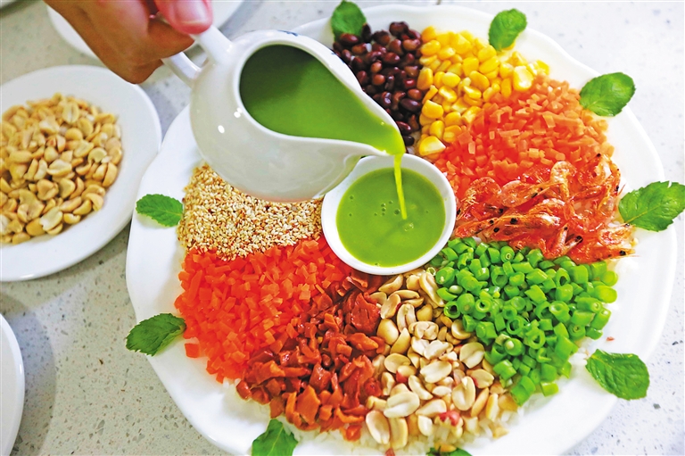 “在我们粥城,每天最热闹的就是吉祥珍堆上桌的时候。”陈建胜说, 把传统的小吃煎堆打造成为“吉祥珍堆”,就是将文化内涵注入美食当中,成为游客喜爱的特色产品。当金黄的珍堆在吆喝声中被抬上餐桌,消费者都会兴奋地用木槌敲开,其他的游客则用手机录下这热闹喜庆的一幕。