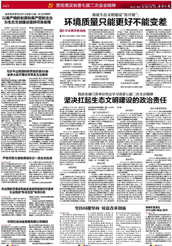海南日报 贯彻落实省委七届二次全会精神 003 2017-09-271 2017年09月27日 星期三